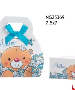 Il prezzo iniziale corrisponde alla bomboniera singola, se vuoi puoi aggiungere la scatola e il sacchetto portaconfetti che arriverà con 5 confetti a scelta, bigliettino personalizzabile con nome/tipo di evento/data e nastrino.