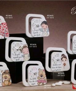 Il prezzo iniziale corrisponde alla bomboniera singola, arriveranno assortite nei 2 modelli, se vuoi puoi aggiungere la scatola e il sacchetto portaconfetti che arriverà con 5 confetti a scelta, bigliettino personalizzabile con nome/tipo di evento/data e nastrino.