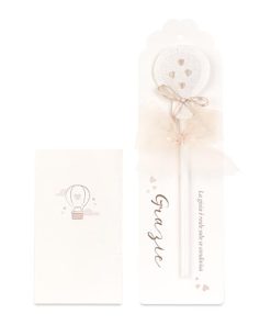 Sposi del 2022, se avete un debole per il tema dei viaggi, allora vi innamorerete di questa collezione a tema mongolfiera! I dettagli beige, i tocchi d’oro uniti ad un esclusivo design italiano rendono queste piccole bomboniere in porcellana, un oggetto prezioso da donare. Non solo cadeaux, ma anche tante decorazioni come segnaposto, chiudipacco e magneti, mantengono la mongolfiera come filo conduttore della cerimonia. E poi ancora nella versione in carta, leggere come una nuvola, a decorare il tavolo della confettata e accogliere gli ospiti. A completare l’allestimento cilindri in polistirolo di diverse altezze con grafica coordinata che fungono da supporti per disporre e modulare l’ ambiente a piacere. In una parola, una favola!