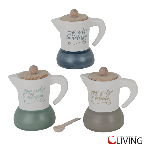 Le scritte motivazionali come “Oggi scelgo la dolcezza”, “Oggi scelgo l’allegria” e “Oggi scelgo la felicità” rendono questa zuccheriera un accessorio unico e perfetto come regalo o bomboniera.