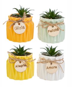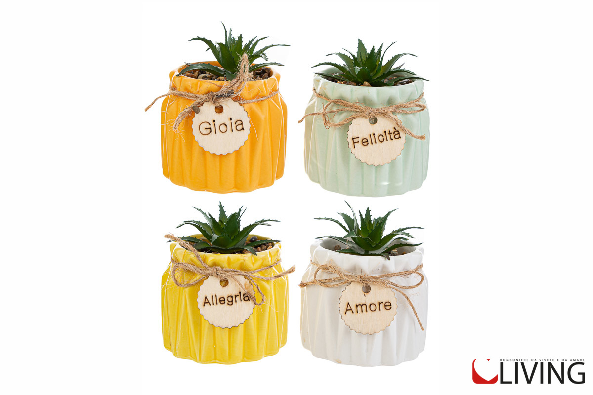 In conclusione, la bomboniera porta piantina in ceramica colorata con piantina sintetica è un oggetto decorativo originale e versatile, che unisce la bellezza della ceramica all’effetto naturale delle piante sintetiche. È un modo elegante per donare una nota di colore e vitalità agli ambienti, garantendo al contempo praticità e durata nel tempo.