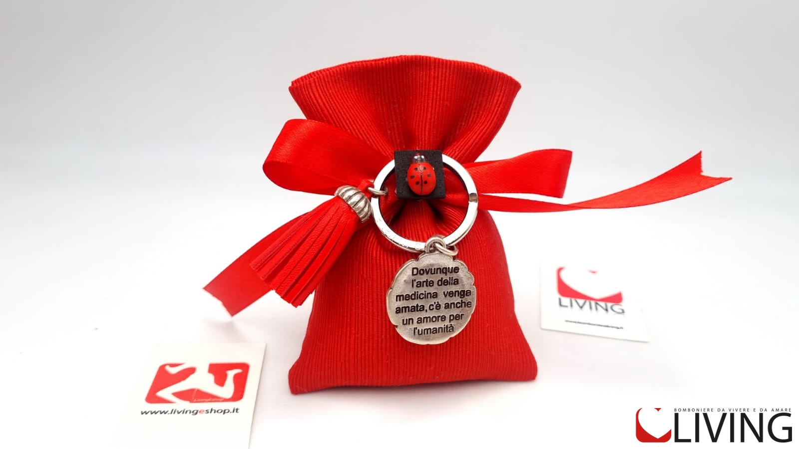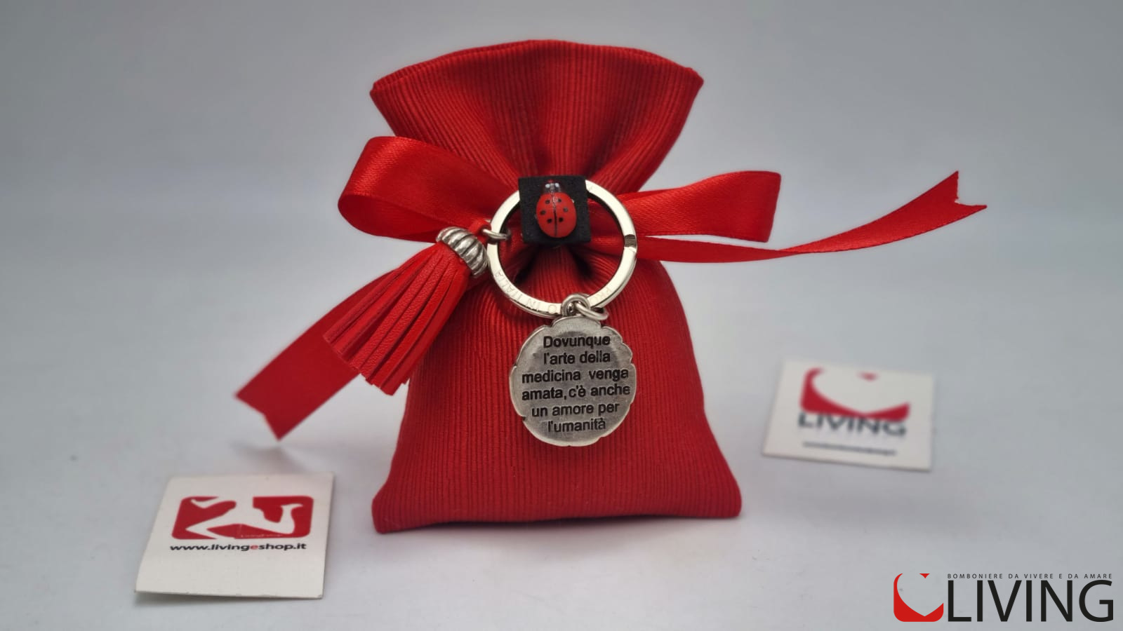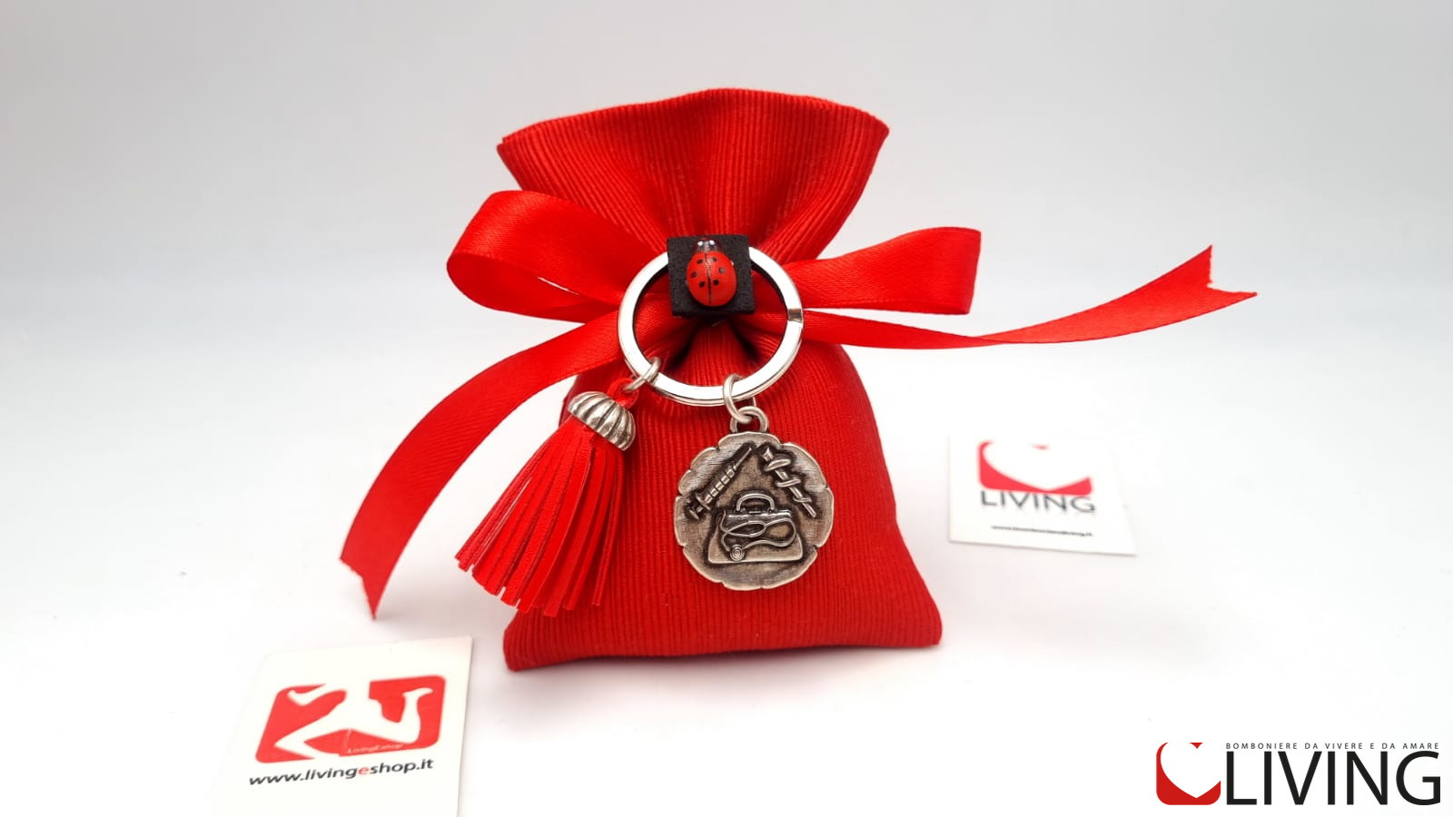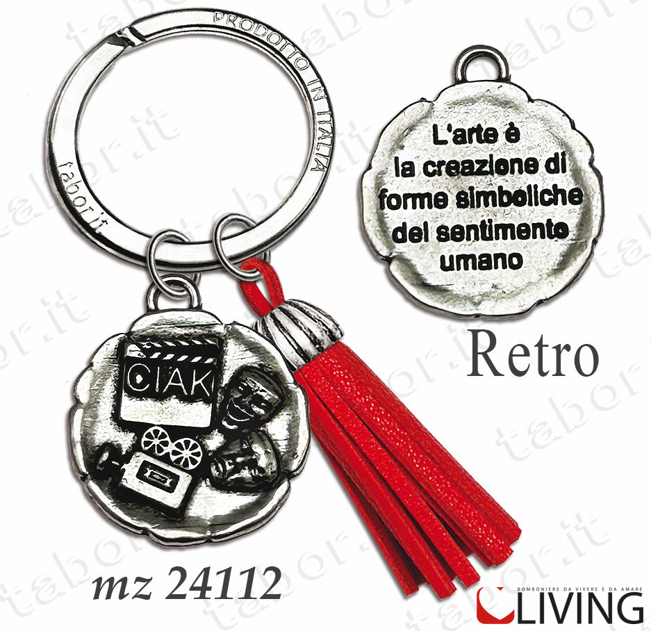 Bomboniera portachiavi laurea scenografia e spettacolo con nappina rossa