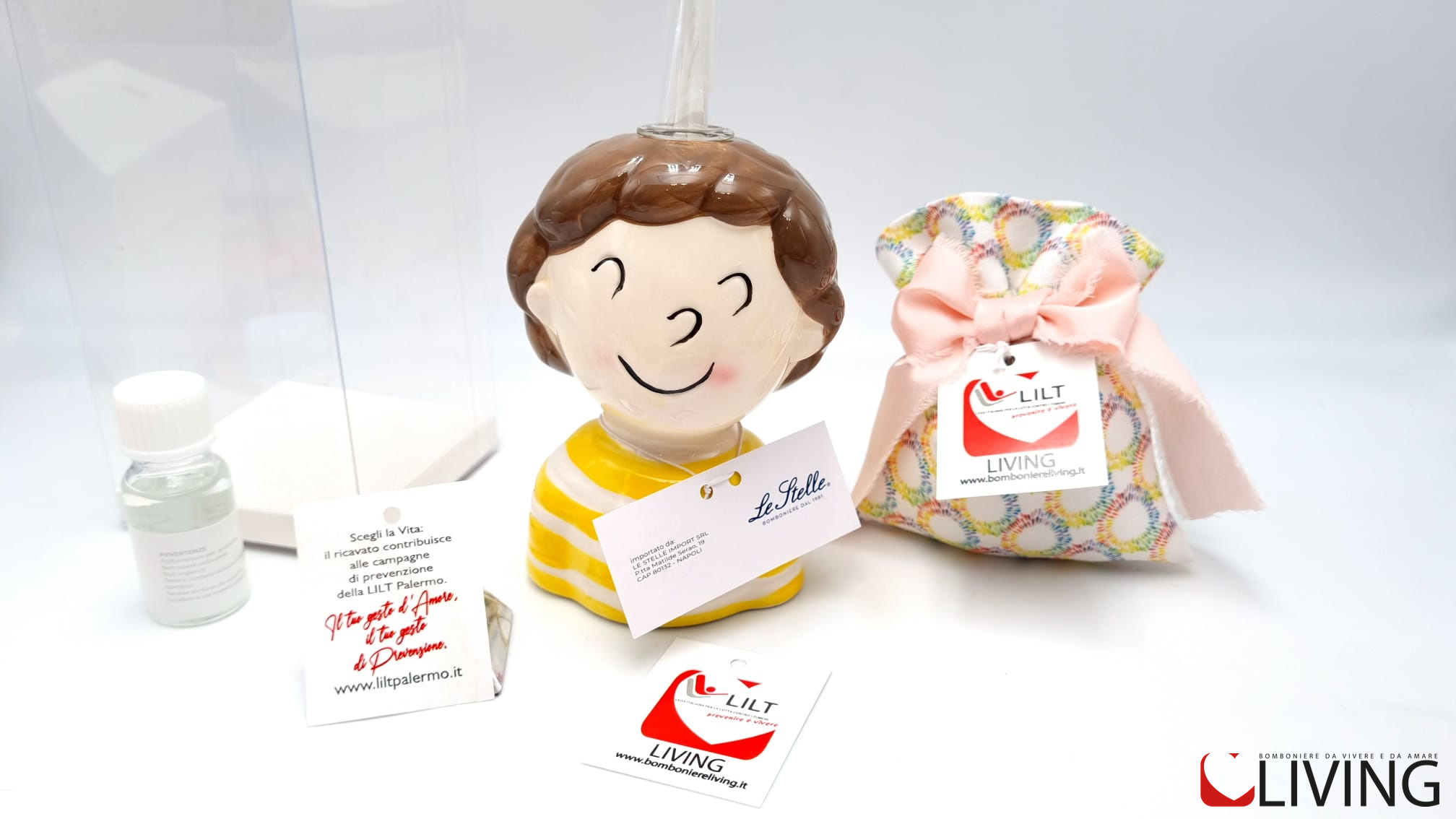 Contribuisci alle campagne di prevenzione della Lega Italiana per la lotta contro i Tumori di Palermo. Il 20% del valore viene devoluta alla LILT di Palermo. Acquistando una bomboniera della linea LILT-LIVING ci aiuterai a sostenere le campagne di prevenzione della Lega Italiana per la Lotta contro i Tumori.