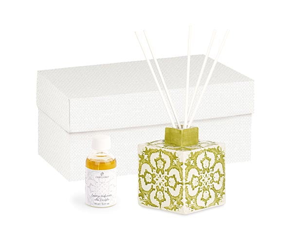 Desideri qualche idea per le bomboniere del tuo matrimonio che siano davvero originali? La risposta è in questi profumatori per ambienti in ceramica, ispirati ai colori delle maioliche siciliane e ai sapori del Mediterraneo. Se vuoi la freschezza, opta per il diffusore “marino” nelle tinte del blu, come il mare profondo, e nel bianco neutro, ispirato alla spuma del mare. Per impulsi più fruttati non perderti invece la versione nelle tinte dei limoni di Sicilia o nel verde degli ulivi. E se stai cercando sensazioni più decise, c’è quello color sabbia, ispirato all’intensità della terracotta. A completare questa collezione che sa di “Estate Italiana” ci sono i magneti coordinati alla fantasia dei diffusori. Per un matrimonio d’ estate, questa linea di profumatori per ambienti rappresenta il cadeaux perfetto per omaggiare gli invitati nel tuo giorno speciale.