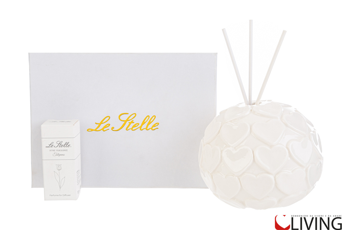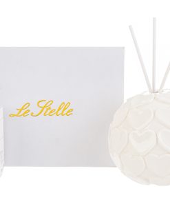 Il profumatore è in grado di diffondere un delicato aroma nella stanza, grazie all’inserimento di essenze profumate all’interno delle figure. La bomboniera è accompagnata da una scatola firmata le Stelle, che ne aggiunge un tocco di esclusività e valore.