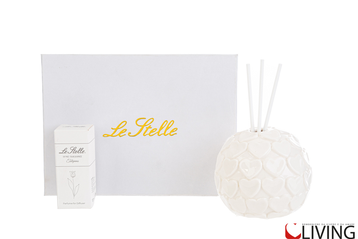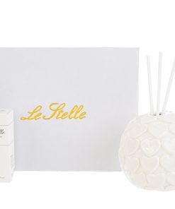 Il profumatore è in grado di diffondere un delicato aroma nella stanza, grazie all’inserimento di essenze profumate all’interno delle figure. La bomboniera è accompagnata da una scatola firmata le Stelle, che ne aggiunge un tocco di esclusività e valore.