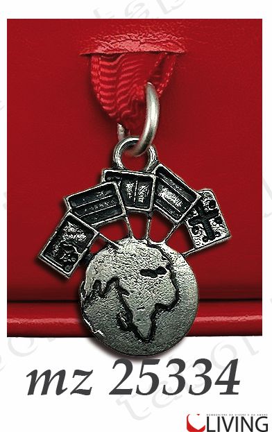 Ciondolo: In metallo, rappresentante il globo e bandiere, simbolo laurea in lingue e turismo