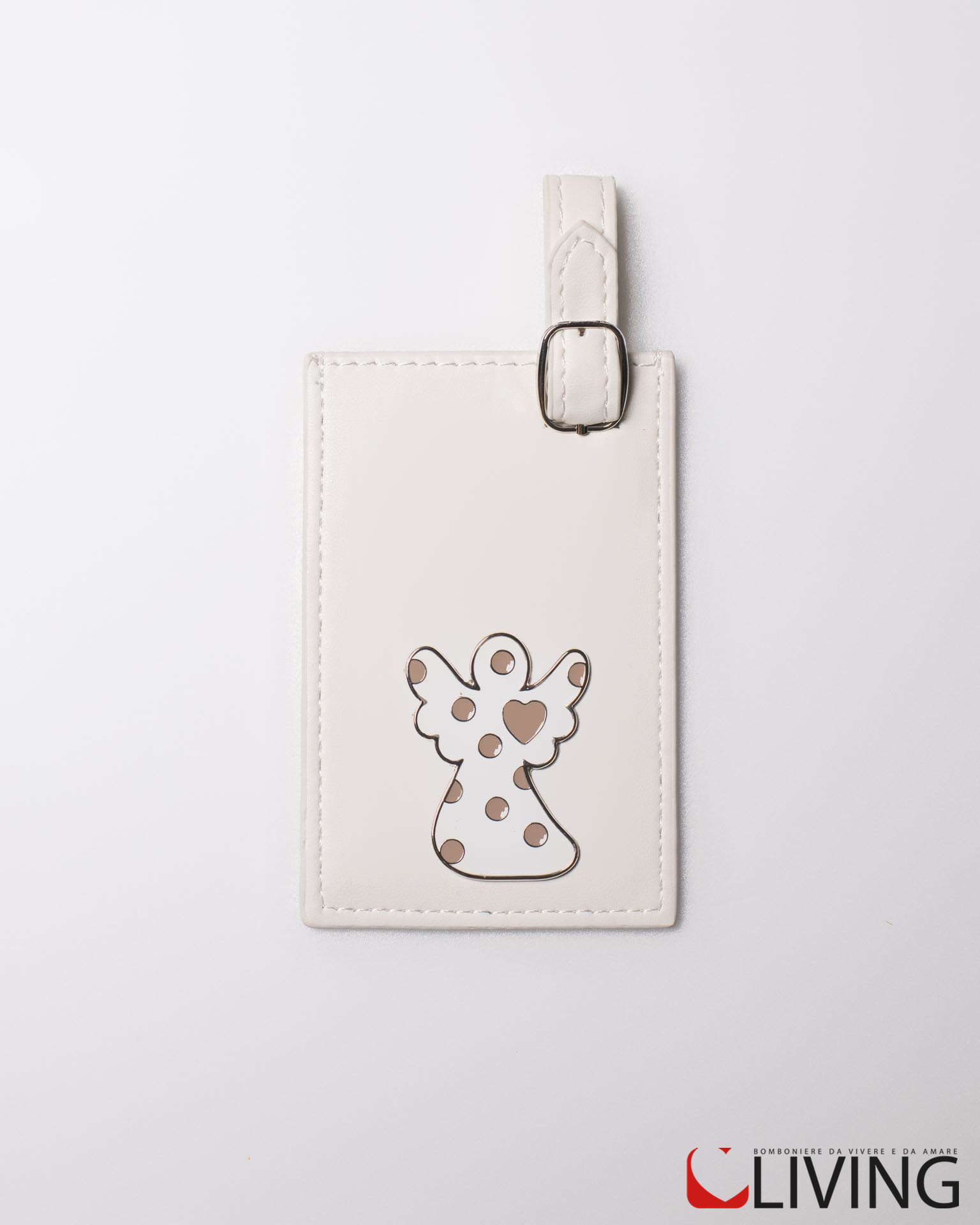 Tag per valigia in ecopelle con angelo bianco in metallo.