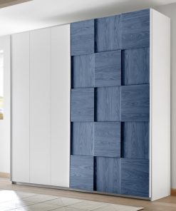 Armadio moderno Brizio con 2 ante scorrevoli, spazioso e largo ben 243 cm, piacevole grazie alla particolare anta realizzata ad effetto scacchiera, disponibile in 5 colori. L’armadio in legno Brizio fa parte di una vivace linea di mobili da camera, che comprende letti, comodini, cassettiere e tanti altro, così da poter comporre la cameretta come desideri.