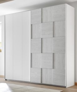 Armadio con due ante scorrevoli da 243 cm, realizzato in legno, fruibile nei colori bianco oppure in bicolore, ideale per donare colore e vivacità alla cameretta dei ragazzi, o per rendere la camera dei più grandi fresca e giovanile. L’armadio moderno Brizio si caratterizza per un’anta realizzata con quadrati a rilievo ad effetto scacchiera a cui potrai attribuire un colore a scelta. Inoltre, contiene internamente 2 aste appendiabiti e due ripiani, a cui potrai aggiungere una cassettiera e altri ripiani di colore bianco o in tinta con l’anta.