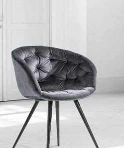 Poltroncina moderna Cabiria con 4 gambe d’appoggio in metallo nero e con elegante rivestimento in velluto colore grigio e lavorazione capitonné, perfetta per sottolineare l’eleganza del tuo salotto o zona giorno.