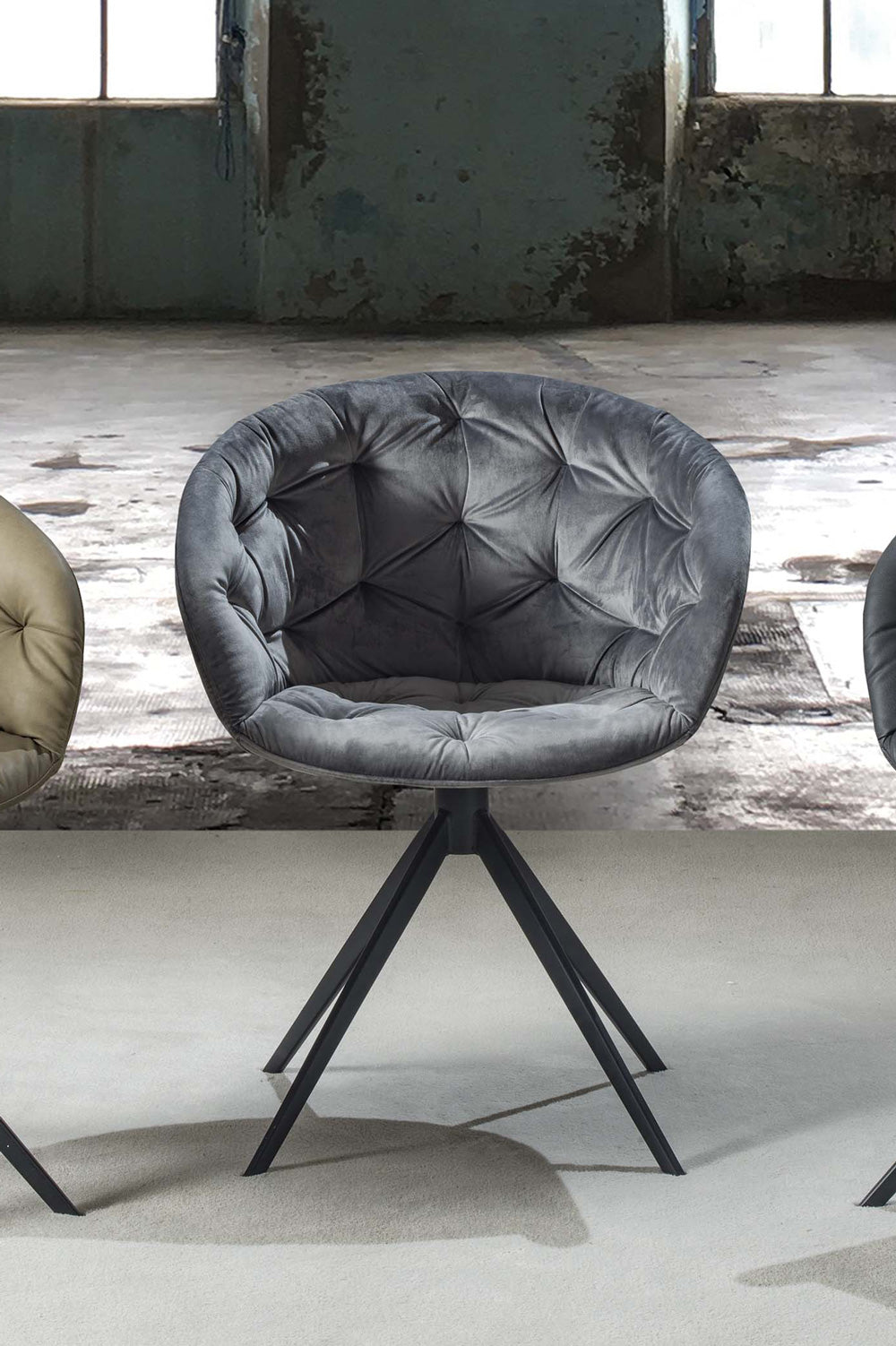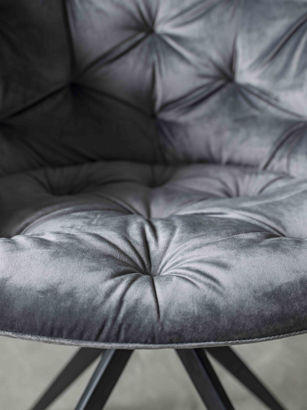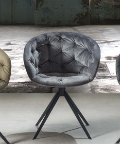 Cabiria – Poltroncina design moderno base in metallo verniciato rivestita in velluto cm 61x52x81h