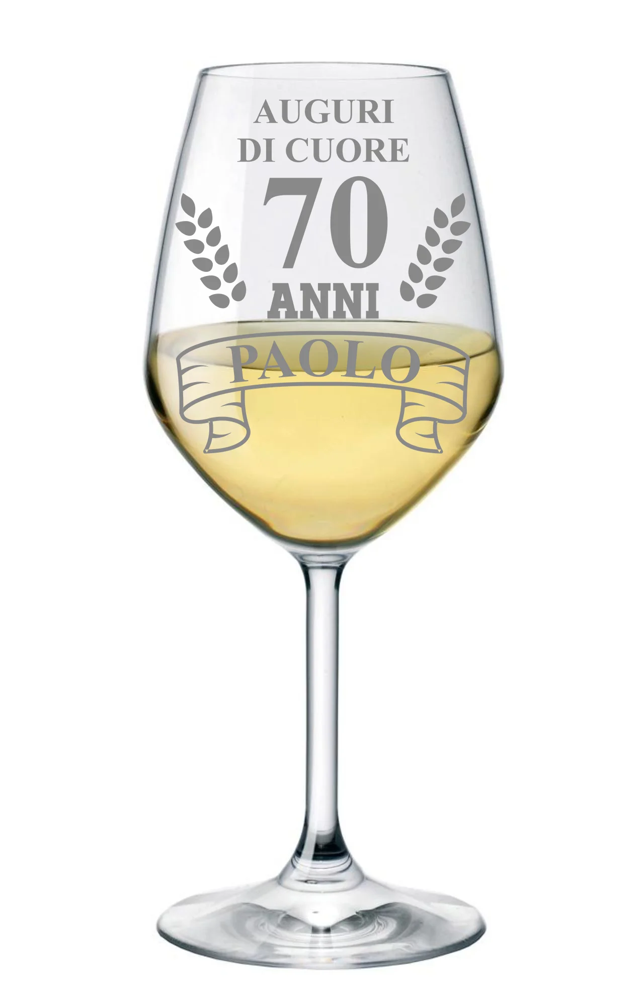 Recensisci per primo “Calice in vetro personalizzato Compleanno 70 anni Auguri di cuore (nome del festeggiato) – con incisione – ca 500ml” Annulla risposta