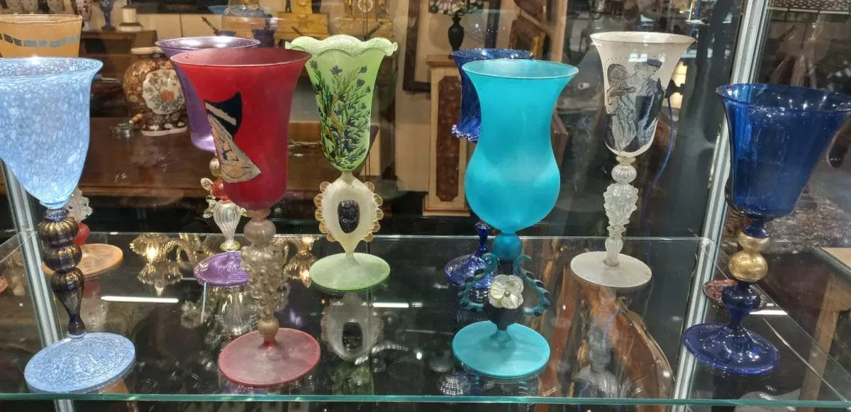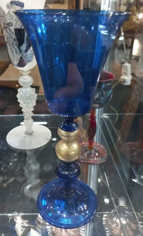 Collezione di calici in vetro soffiato veneziano. Interamente fatti a mano, misure diverse dai 20 ai 30 cm, colori e forme diverse.