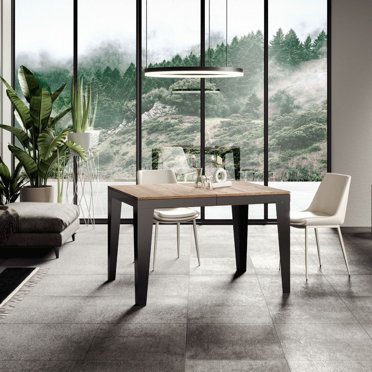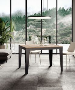 Tavolo da pranzo moderno Candara Evolution, composto da piano in legno e struttura in metallo colore antracite, elemento che connota questo modello.
