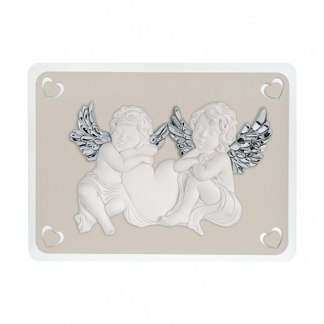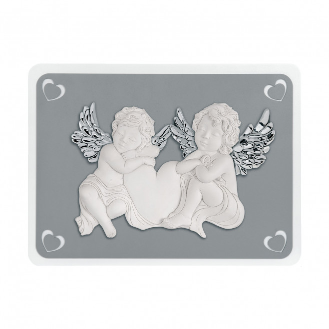 Capezzale angeli in marmorino con ali argentate.