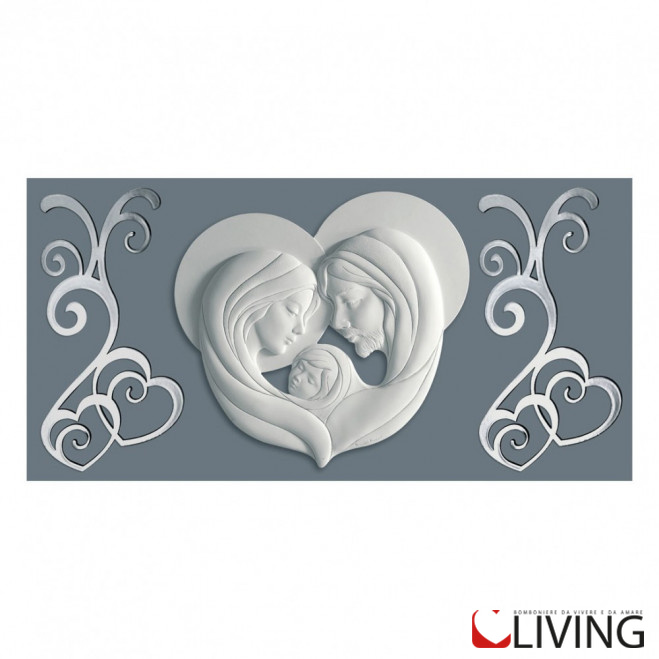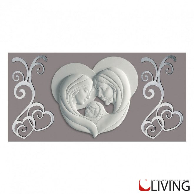 Capezzale in legno MdF con Sacra famiglia in rilievo.