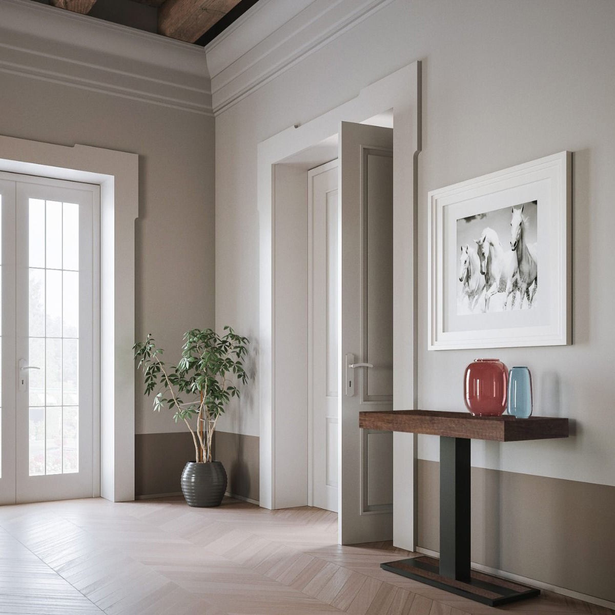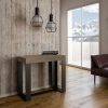 Tavolo consolle allungabile Capital, dal design moderno ed essenziale, si distingue per la gamba centrale in ferro e per il piano in legno finitura noce. Capital è la garanzia di un prodotto italiano, con un design singolare e una funzionalità assoluta, infatti diventa un tavolo da pranzo di ben 3 m, pratico, ampio e stabile.