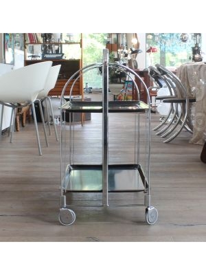 Designer: Gerlinol / Produttore: Bremshey AG / Modello: Carrellino porta vivande / Carrellino bar / / Pratico e intelligente, questo carrello pieghevole prodotto in Germania negli anni 60 è firmato Gerlinol, con il marchio impresso sul retro dei ripiani, a garanzia dell’autenticità.