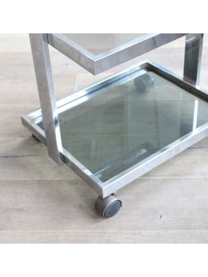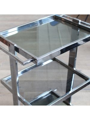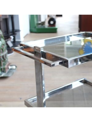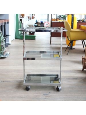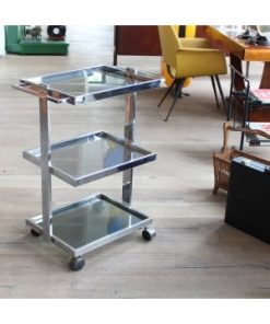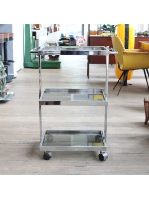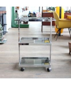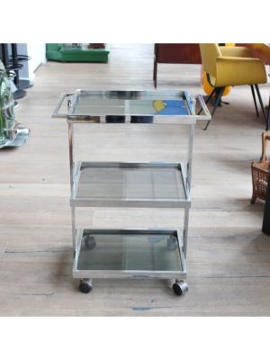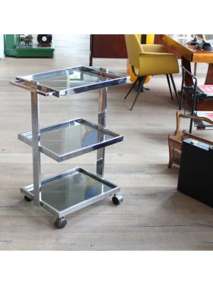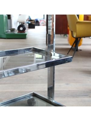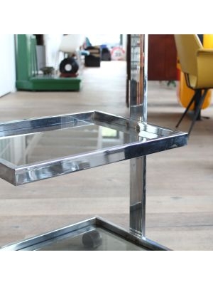 Modello: 3 livelli / / Nato come carrello medicale, oggi è pronto a cambiare corsia: questo affascinante pezzo in acciaio cromato e vetro, dritto dritto dagli anni 70-80, è un perfetto esempio di design Space Age applicato alla funzionalità.