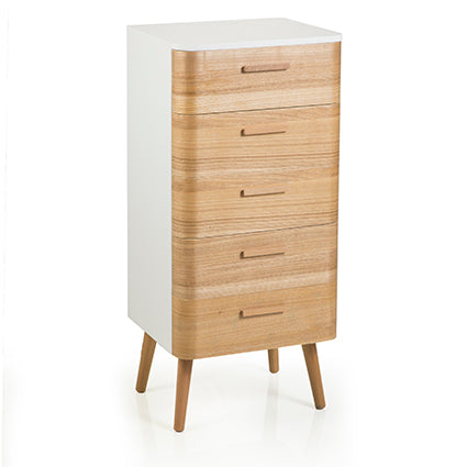 Cassettiera 5 cassetti in legno bianco e naturale stile vintage cm 45x41x100h