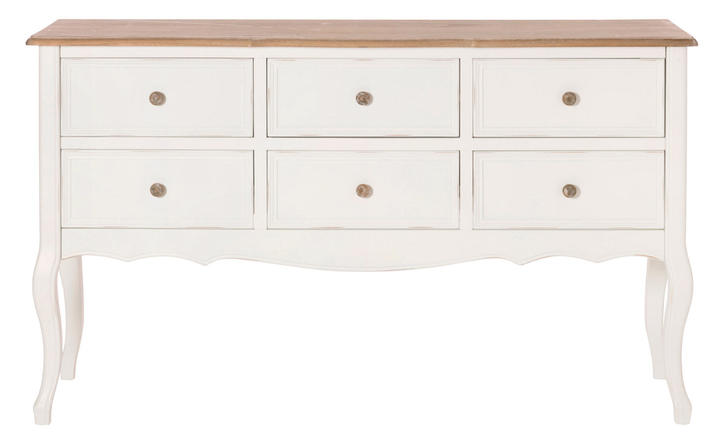 Cassettiera classica in legno con 6 cassetti bianco e naturale cm 134x40x81h