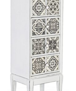 Cassettiera in legno 5 cassetti con inserti in ceramica decorati cm 40x32x131h