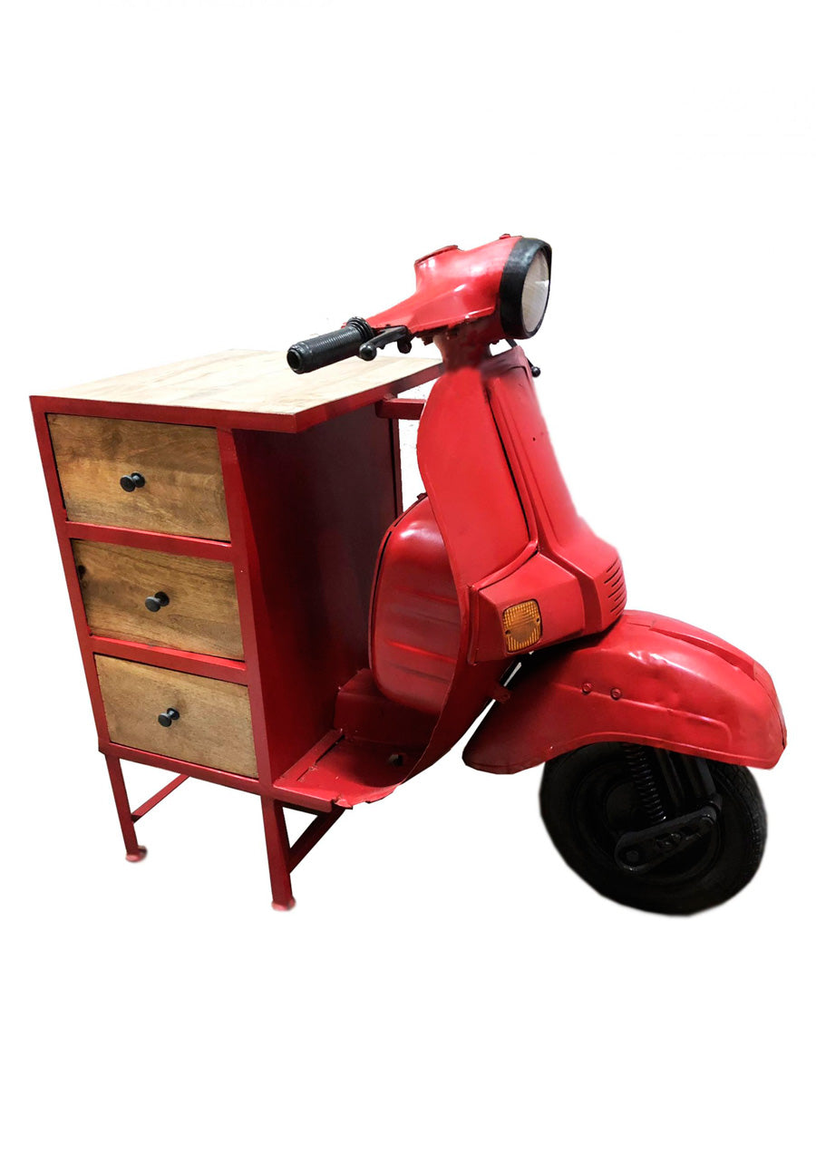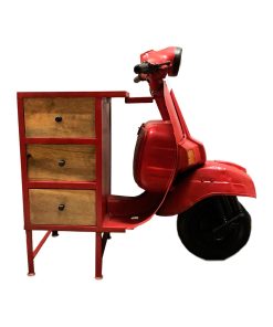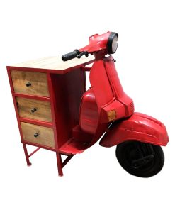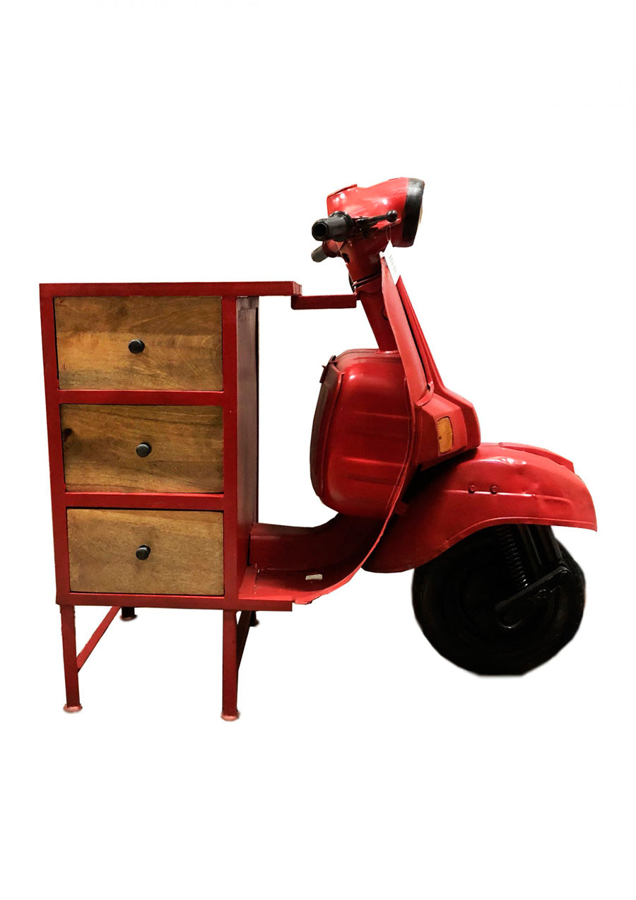 Cassettiera stile industrial modello vespa con 3 cassetti in legno e metallo rosso cm 68x130x105h