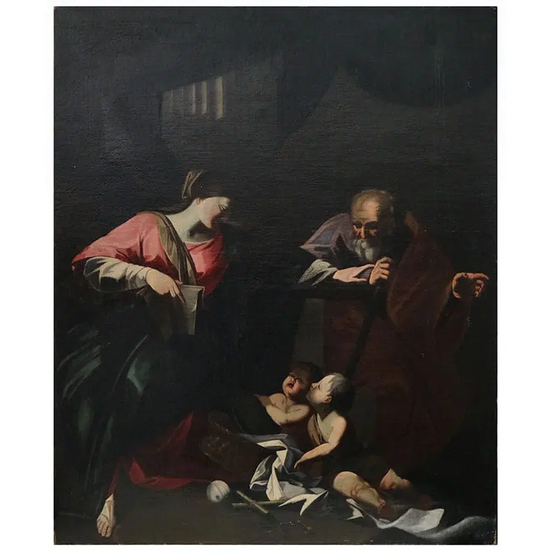 Dipinto olio su tela raffigurante la Sacra Famiglia con San Giovannino.