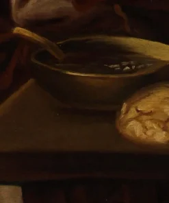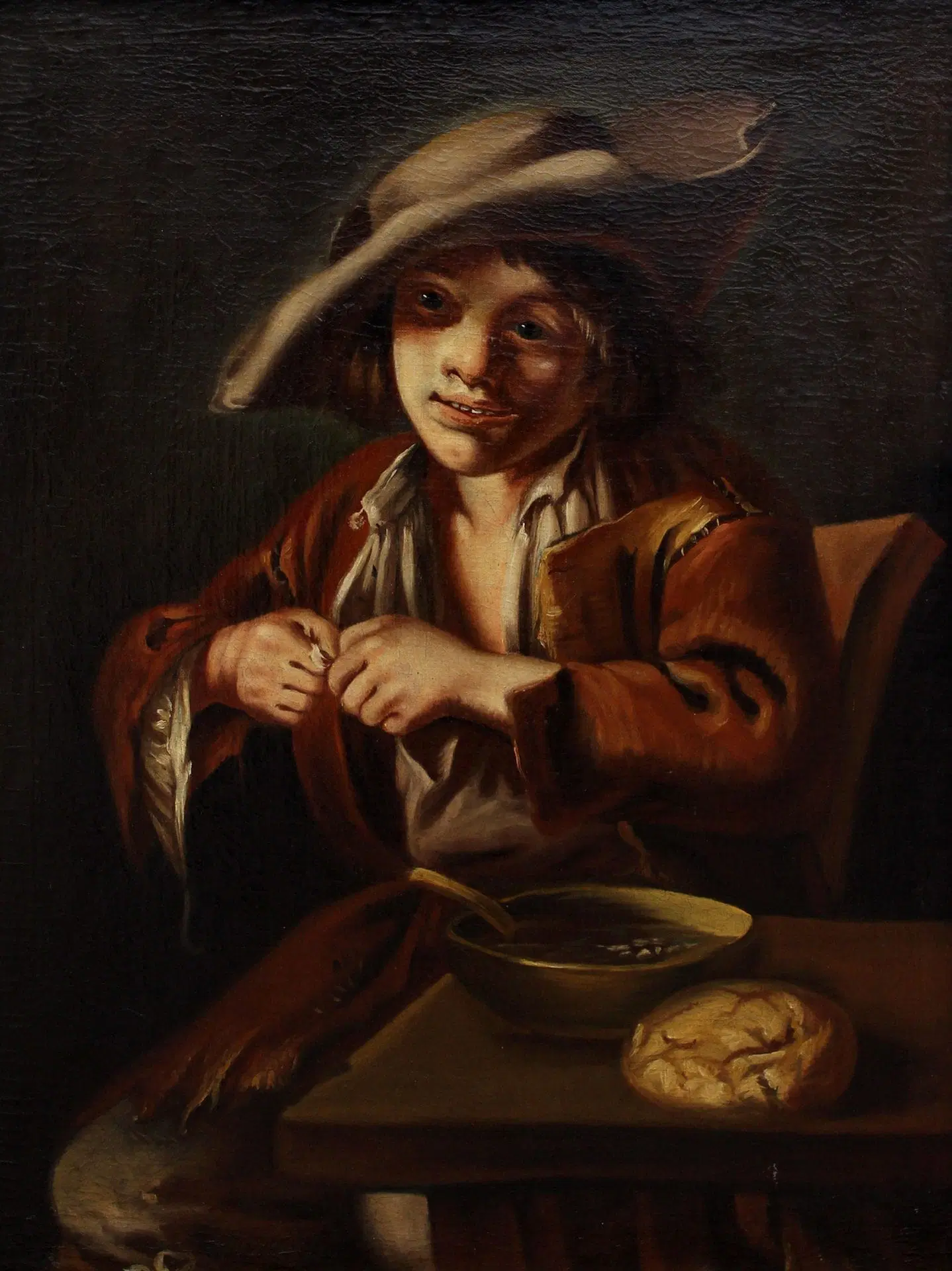 La tela esaminata è da riferire alla mano di un pittore attivo nella cerchia di Giacomo Francesco Cipper, detto il Todeschini (1664-1736). Di origine austriaca, non si conosce il momento in cui il Todeschini si trasferì in Italia; nel 1696 risulta residente a Milano, dove sposa la figlia di un notaio, Giulia Francesca Galdone. Fu prevalentemente attivo nella città meneghina, Bergamo e Brescia, diventando lombardo d’adozione. Durante il suo percorso creativo, il Cipper rinnovò la tradizione seicentesca dei Bamboccianti rileggendo in chiave personale gli esempi di Monsù Bernardo e del Magnasco. Dalle sue opere traspare l’ambizione di trasferire con spirito monumentale le sue idee, dedicandosi ad una realistica definizione degli oggetti di uso quotidiano, dei cibi e delle suppellettili, giungendo sino alle massime conseguenze della tradizione comica e grottesca, che in area lombarda trova le sue origini nel rinascimento.