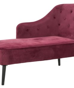 Chaise lounge moderna, un complemento importante per regalare una nota elegante e ricercata al salotto. La comodità della poltrona è nota, visto che ci si può stendere su una soffice imbottitura in spugna e rivestimento in tessuto effetto velluto colore bordeaux. La presenza dei bottoni che arricchiscono lo schienale, rimandano ad un modello classico, per questo, inseribile in salotti tradizionali, tuttavia la poltrona sarà in perfetta sintonia anche in ambienti moderni.
