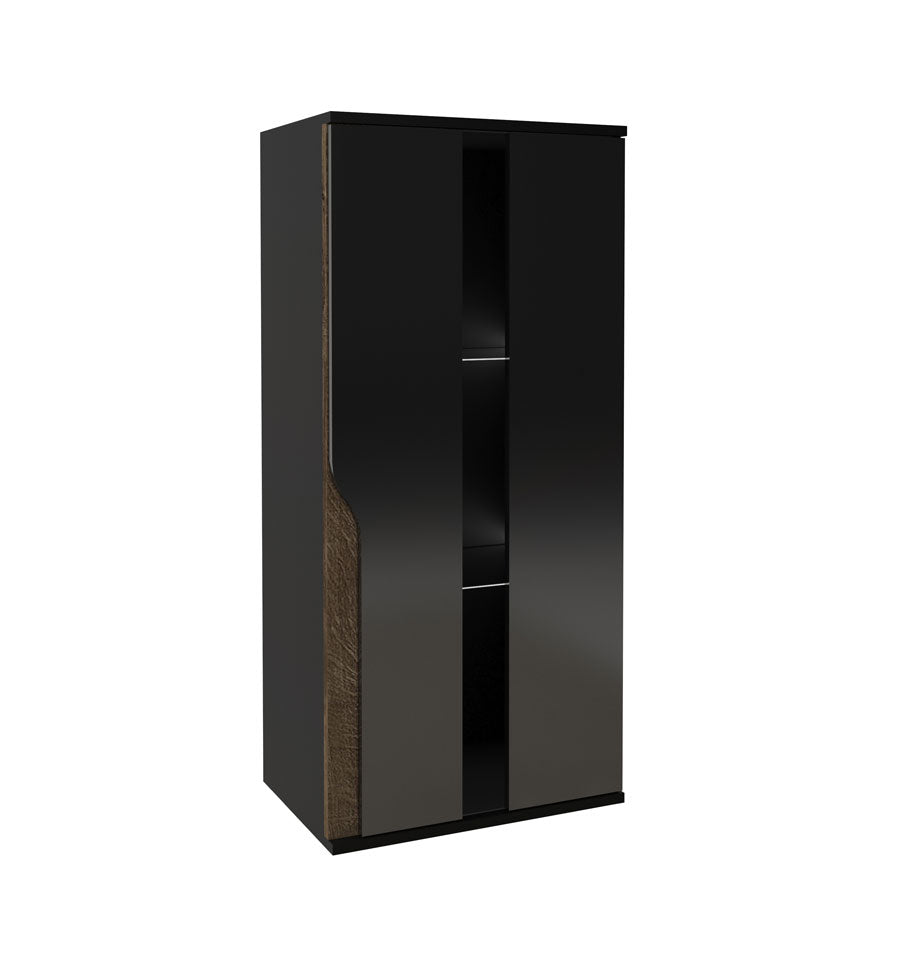 Chivel è una graziosa idea per chi ama arricchire il proprio soggiorno con una vetrinetta ma sospesa. Infatti, questi pensile potrà essere appeso sulla parete ottimizzando lo spazio ed arredando con stile moderno e innovativo il tuo ambiente. La vetrina è prodotta in legno con struttura opaco e frontali lucidi dotata di una sola anta con 2 ripiani interni in vetro a cui potrai aggiungere una luce a led. Chivel è disponibile in 4 modelli di colore: nero con inserto bianco lucido, nero con inserto old oak, oppure bianco con inserto nero lucido oppure inserto in oak finitura naturale del legno.