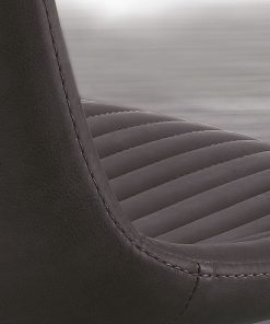 Il rivestimento è realizzato in ecopelle con cuciture verticali che regalano un taglio giovanile al design, a queste si abbina la struttura in metallo verniciata nera, con 4 gambe d’appoggio dalla linea obliqua.