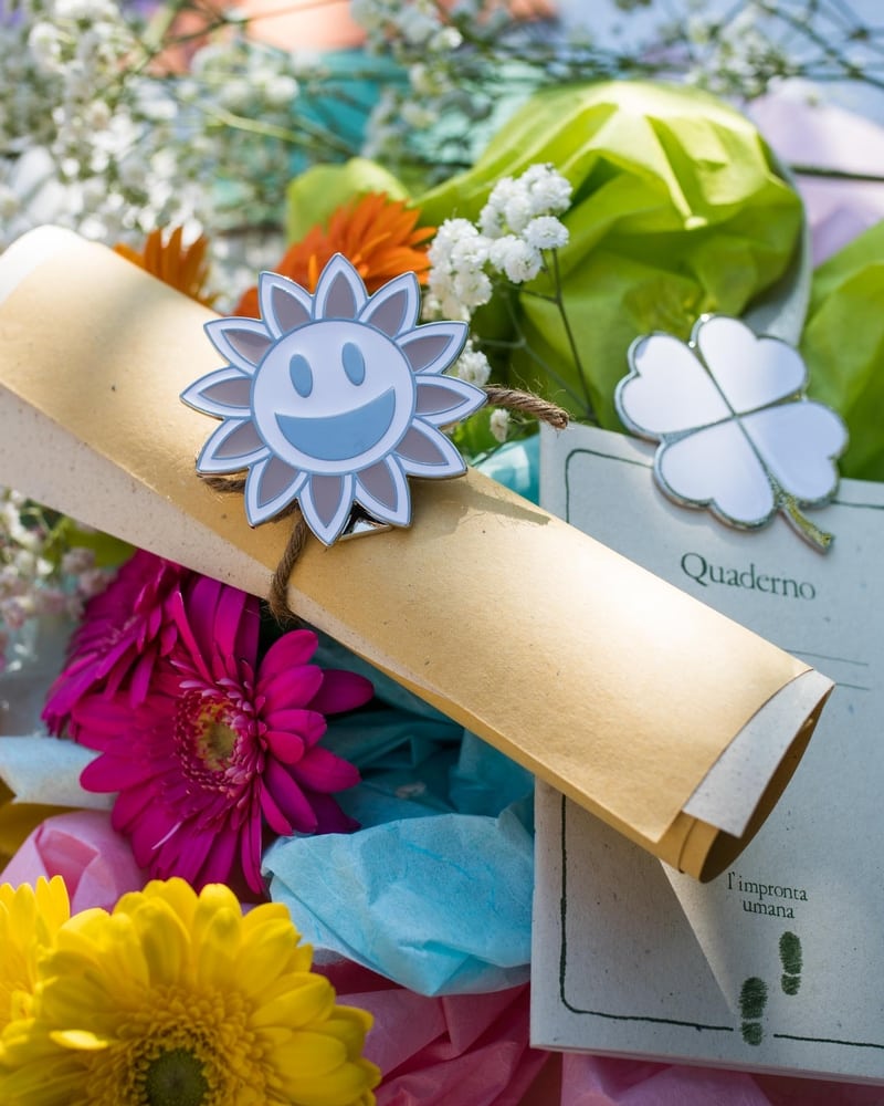 Clip in metallo smaltato a forma di sole, compreso di astuccio e sacchettino portaconfetti vuoto per il fai da te ,se clicchi su bomboniera confezionata penseremo noi a inserire confetti, nastrino e biglietto.