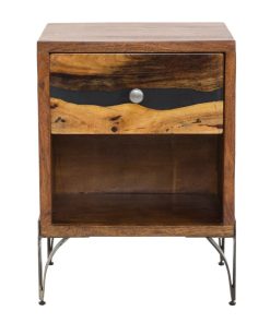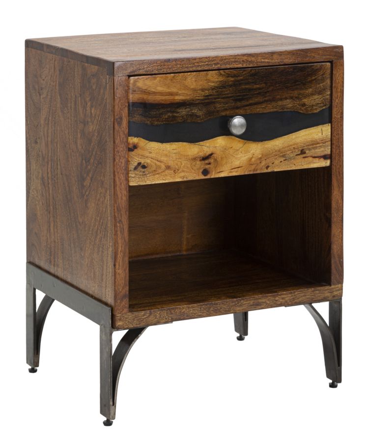 Comodino in legno di acacia con cassetto e vano stile industriale cm 44x40x60h