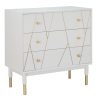 Comodino moderno con 2 cassetti, un’idea imperdibile per chi vuole mettere a punto una camera da letto elegante e distinta. Il nostro comodino design presenta inserti in metallo dorato che si presentano come linee oblique che si uniscono, con lo scopo di creare una vivace geometria, che spicca su sfondo bianco della struttura in legno. Da abbinare con la cassettiera 3 cassetti della stessa linea.