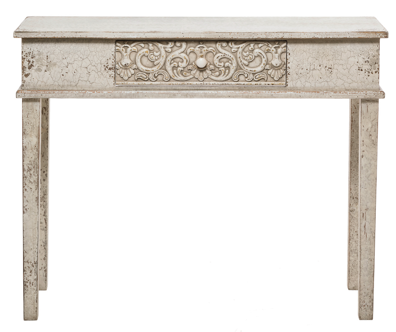 Mobile da ingresso con cassetto, consolle in legno effetto invecchiato stile etnico, per arredare con stile ed eleganza la tua casa.