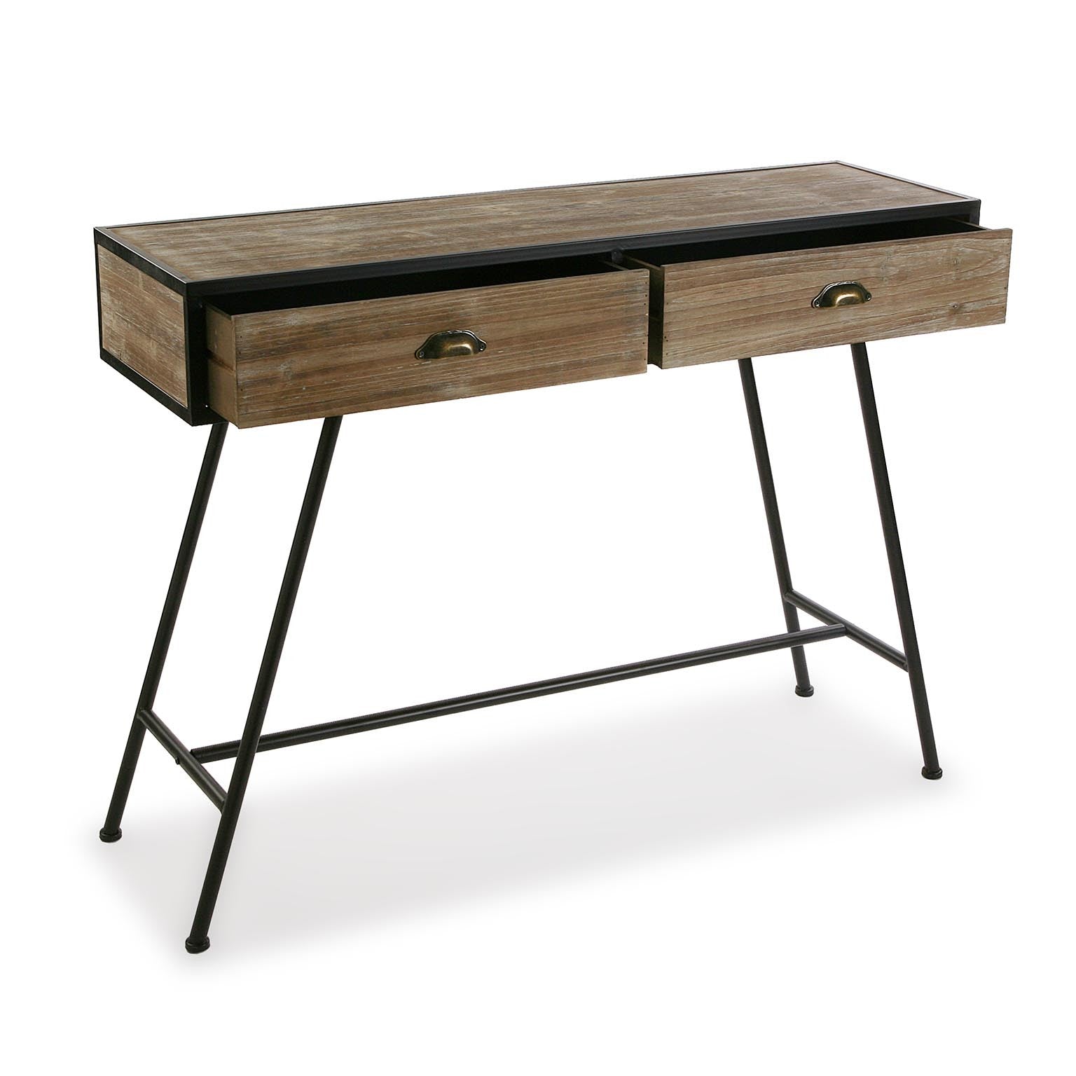 Consolle da ingresso realizzata in legno e metallo in stile industrial, comprende 2 cassetti utili e funzionali.