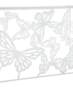 Consolle design realizzata in metallo, sintesi di eleganza e raffinatezza impareggiabile. Infatti, le vistose farfalle che decorano tutta la struttura esprimono una sensazione di leggerezza e delicatezza. La scelta del colore bianco e soprattutto il bellissimo piano con specchio, si rivelano la scelta ottimale per arredare con gusto ricercato il tuo ingresso, da abbinare con una poltrona, pouf , uno specchio o pannello decorativo per creare un angolo ricco di fascino.
