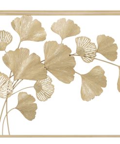 Consolle design da ingresso in metallo dorato con foglie e piano con specchio