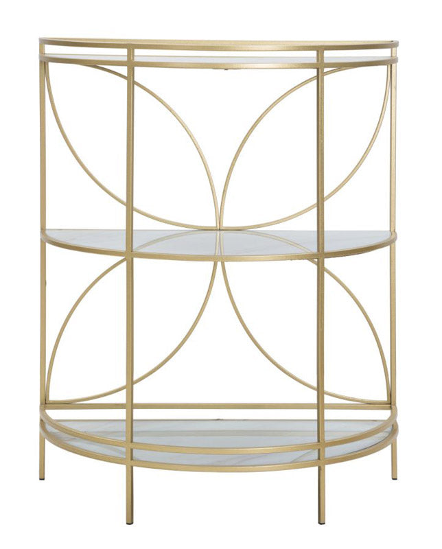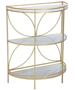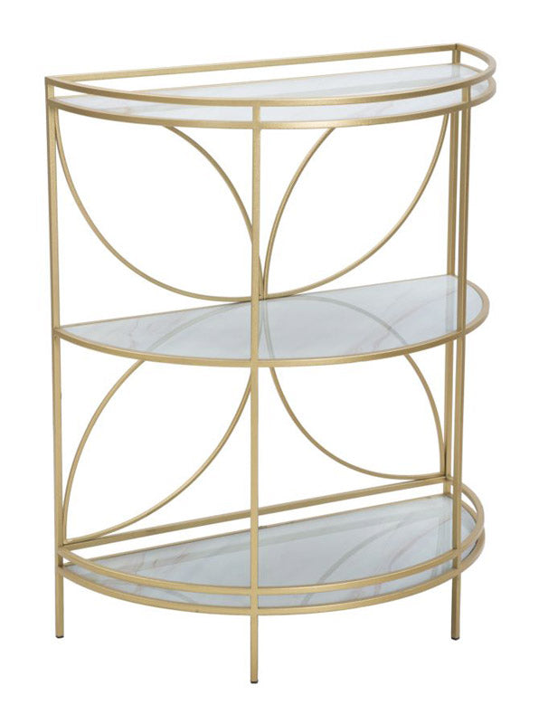 Consolle moderna in metallo dorato con 3 ripiani in vetro sfumato cm 70x35x85h