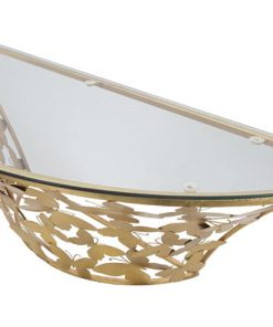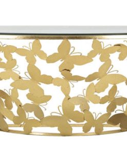 Consolle sospesa moderna in metallo dorato e vetro con farfalle cm 120x40x37h