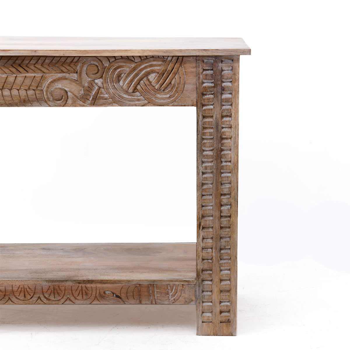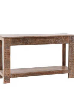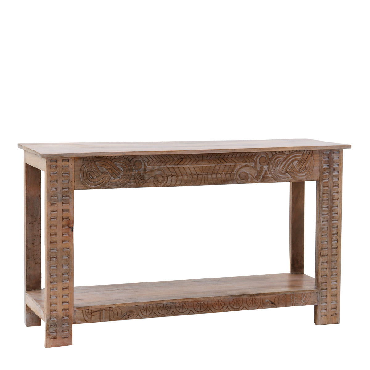Consolle stile etnico in legno di acacia con intagli cm 140x40x80h