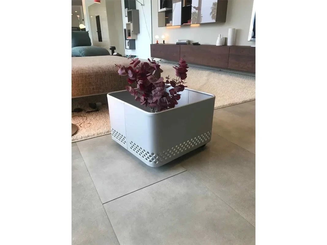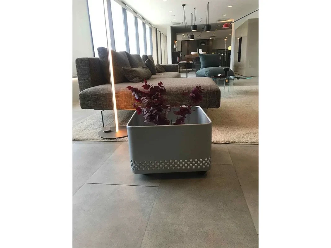 Contenitore con ruote realizzato da Ycami. Interamente in alluminio. Adatto per molteplici usi sia per arredi interni che esterni.
