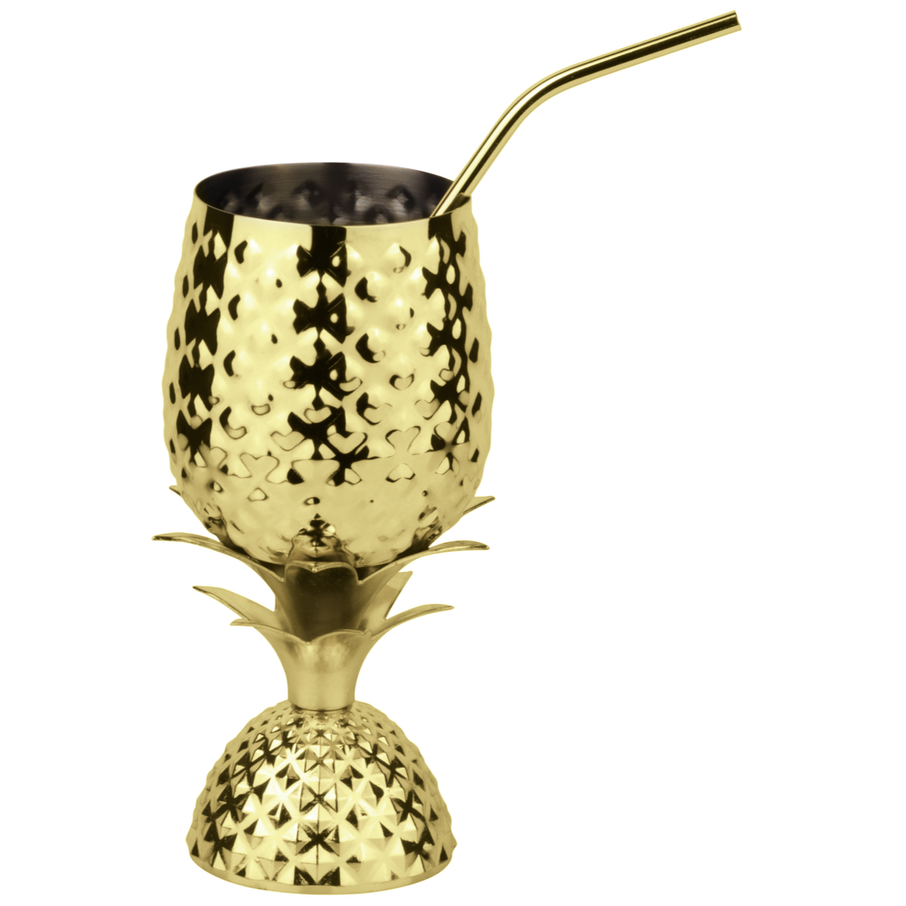 Porta un tocco di esclusività e divertimento ai tuoi cocktail con la Coppa Ananas Oro con Cannuccia ML.500 della linea Bartending Paderno di Sambonet Paderno Industrie. Realizzata in acciaio inox 18/10 di alta qualità, questa coppa si distingue per la sua forma originale e accattivante a forma di ananas, che la rende un vero e proprio oggetto di design.