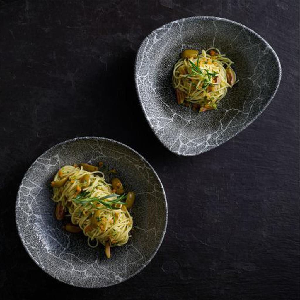 Dai un tocco di vivacità e originalità alle tue presentazioni con la Coppa Triangolare Kintsugi Reverse Quartz Black CM.23,5 della linea Studio Prints Kintsugi Reverse di Churchill. Ispirata all’arte giapponese Kintsugi di riparare la ceramica rotta, questa coppa presenta una sorprendente reinterpretazione del design Kintsugi originale. Caratterizzata da colori vivaci su tutta la superficie e dal craquelé nel reattivo Quartz Black, la Coppa Triangolare Kintsugi Reverse Quartz Black regala un tocco di unicità e personalità alla tua tavola. La sua forma triangolare e la dimensione compatta la rendono perfetta per servire antipasti, finger food, dessert o piccole creazioni culinarie. La texture irregolare del craquelé crea un gioco di luci e ombre che valorizza le tue creazioni, donando un tocco di raffinatezza e originalità alla tua presentazione. Scegli la Coppa Triangolare Kintsugi Reverse Quartz Black e conquista i tuoi ospiti con un mix di tradizione, innovazione e colore, rendendo ogni portata un’esperienza sensoriale indimenticabile.