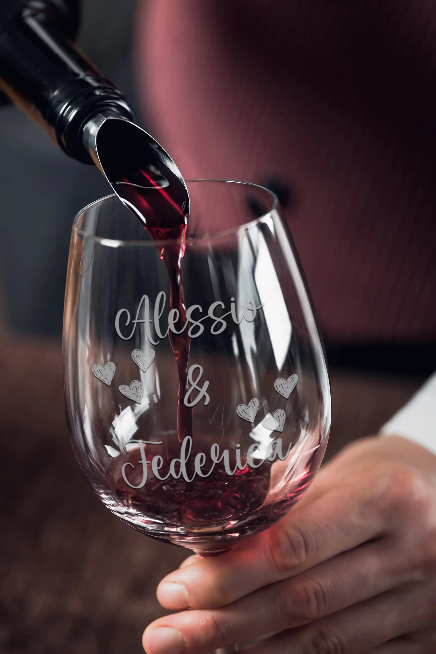 GUSTA UN BUON BICCHIERE DI VINO CON STILE: Gusta un buon bicchiere di vino con i nostri calice con incisione, una gradita idea regalo unica e originale per celebrare l’amore, un anniversario, una data importante, il tuo SanValentino e qualsiasi altra ricorrenza che riguardi gli innamorati, sposati, fidanzati.