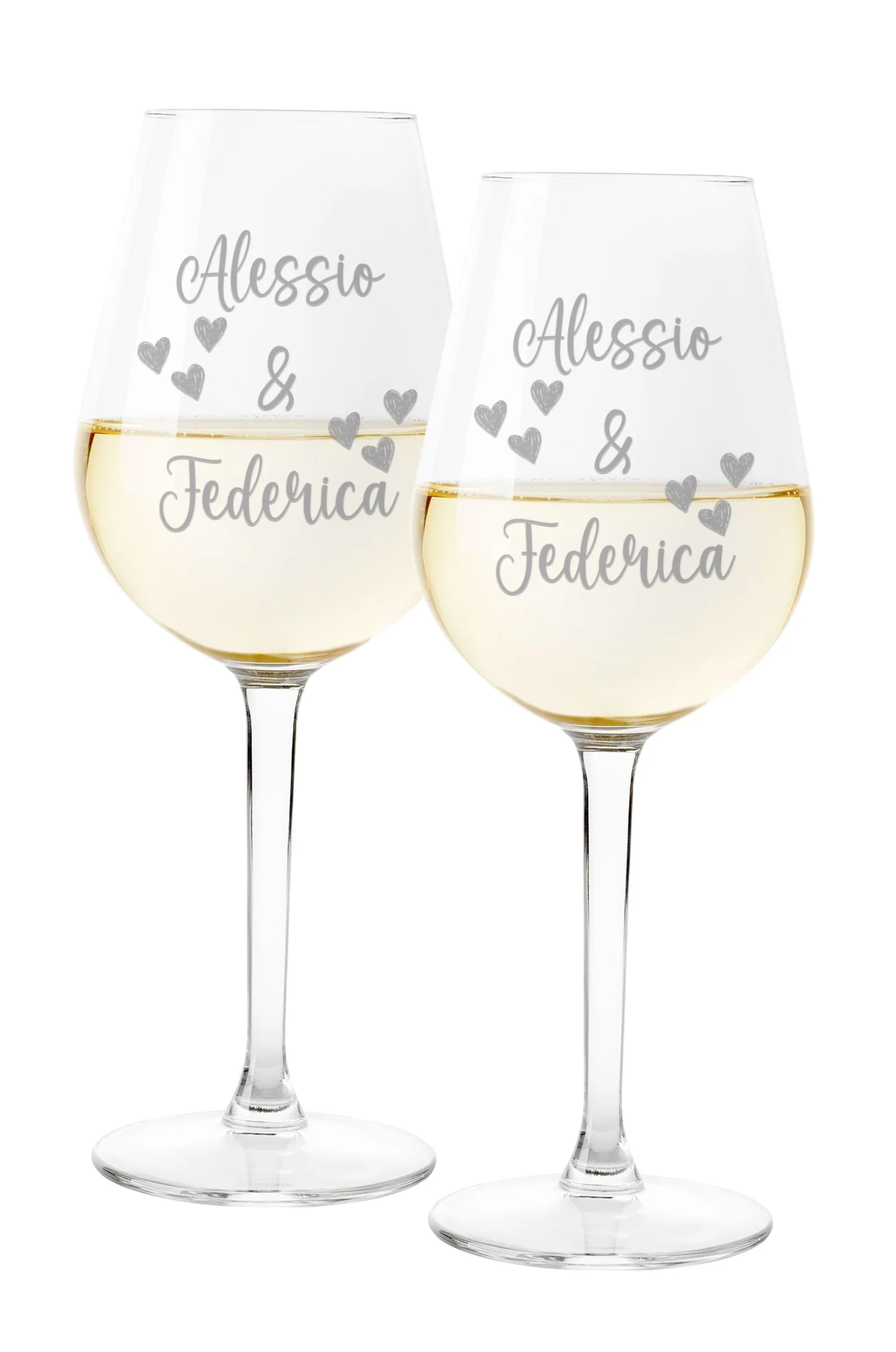 Coppia calici da vino San Valentino PERSONALIZZABILI con incisione divertente: simpatica e originale Idea Regalo calice vino divertente San Valentino Innamorati Matrimonio Fidanzamento compleanno natale papà mamma nonno nonna zio zia madrina. Capienza 50cl, vetro di alta qualità.