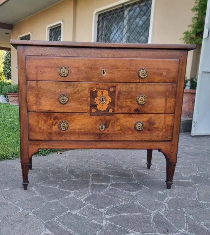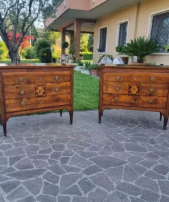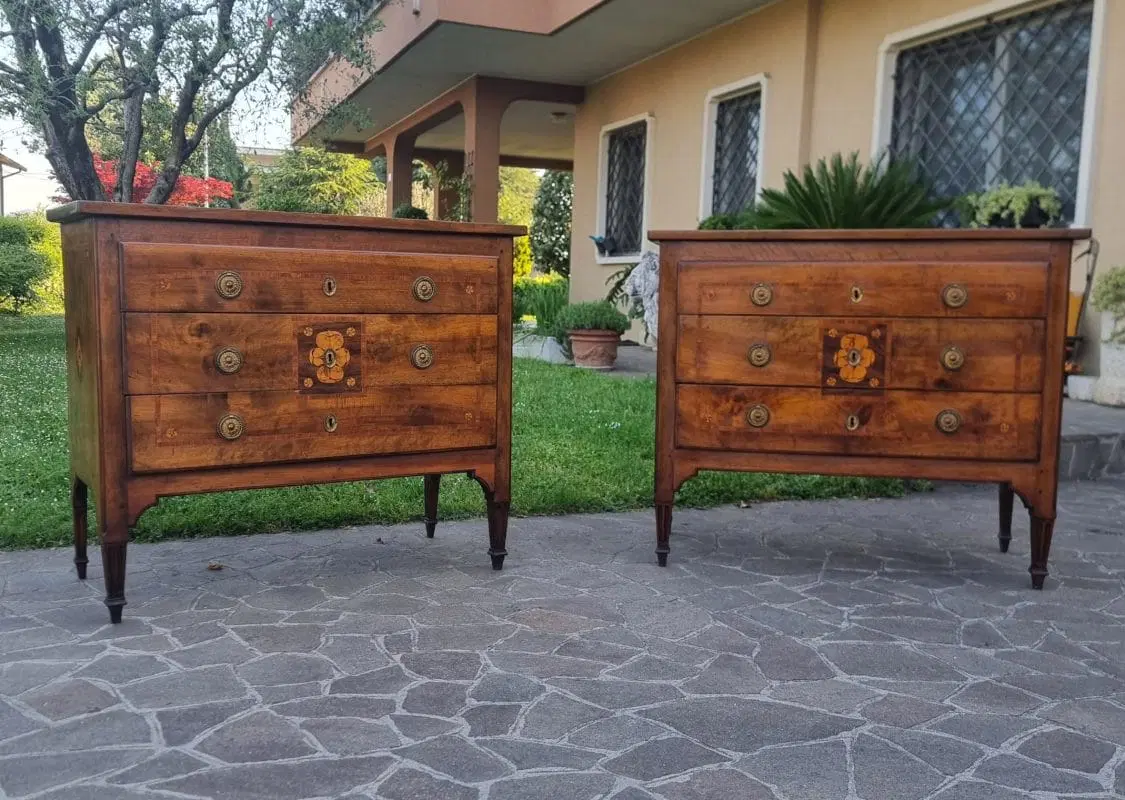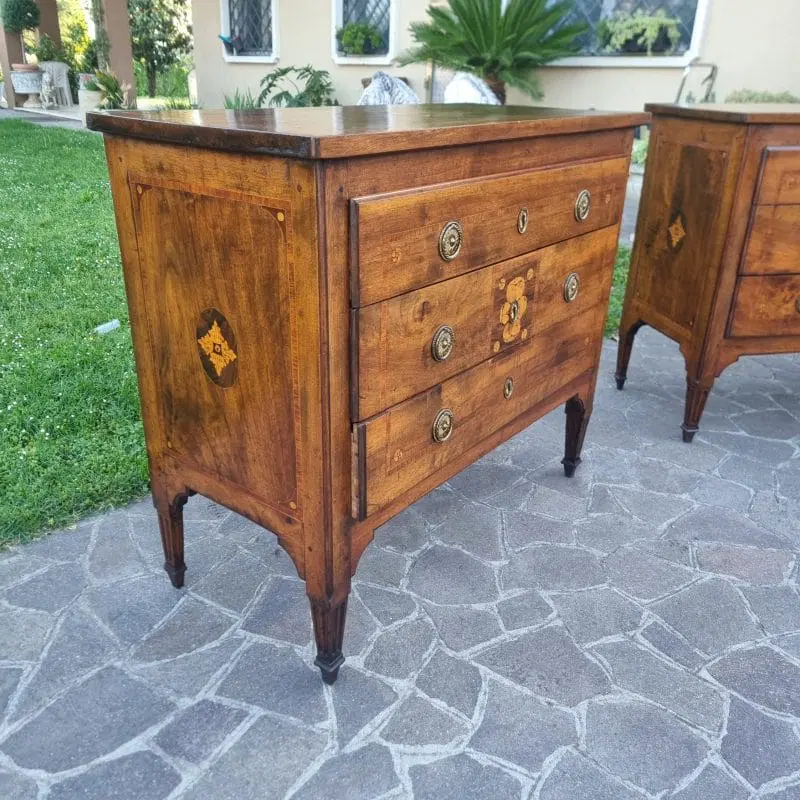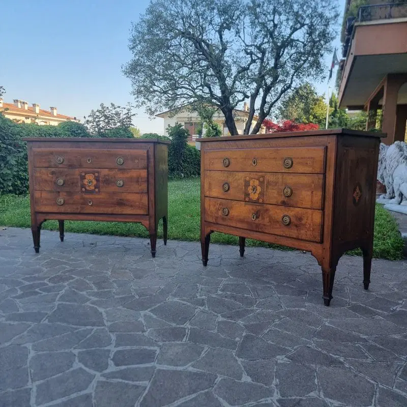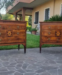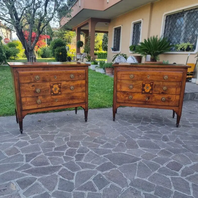 Coppia di Cassettoni Luigi XVI del ‘700 in Noce Lastronato e Intarsiato