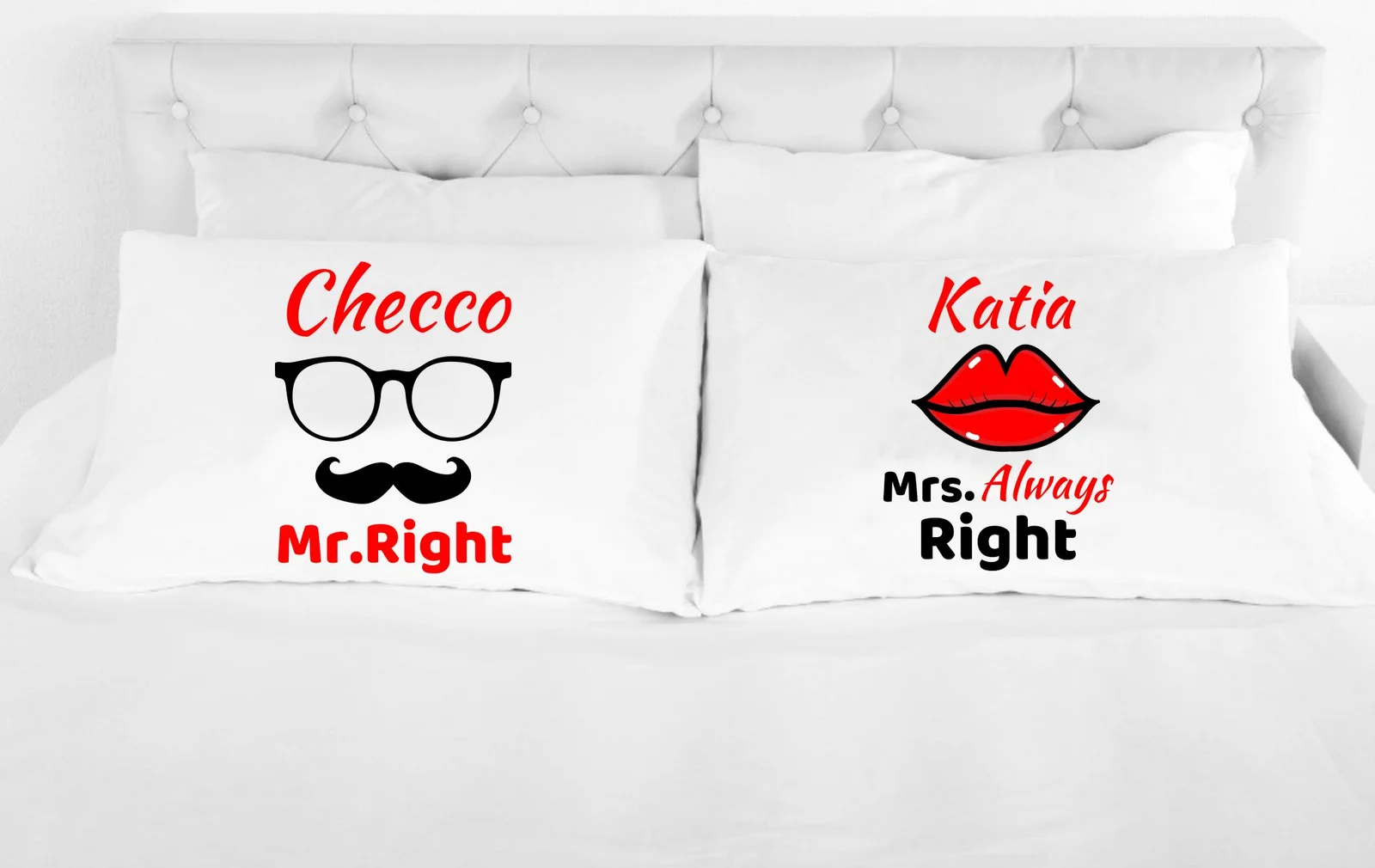 Coppia di federe 100% cotone, realizzata in stampa diretta su tessuto, stampa morbida e traspirante.